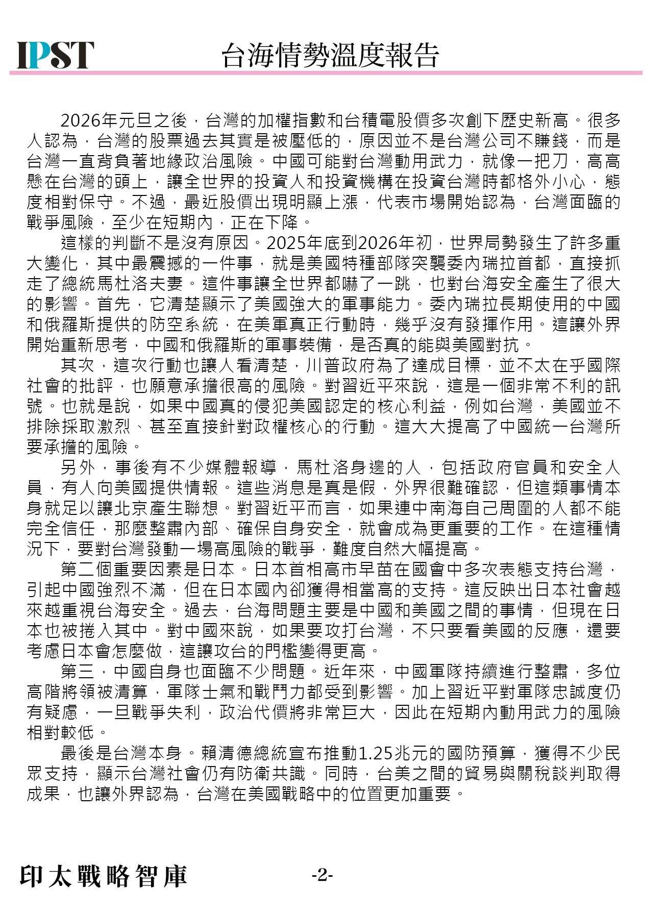 IPST台海情勢報告書日文版測試版公開(2024年12月)印太戰略智庫每月向會員發行一份「台海情勢報告書」。